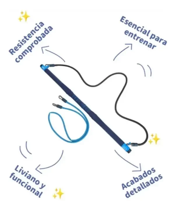 Barra de entrenamiento con bandas de resistencia, utilizada para ejercicios de fuerza y tonificación.