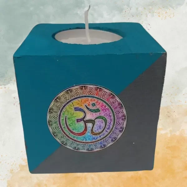 * Luz y Meditación: Porta vela cuadrado con el símbolo Om para encender tu intención.
