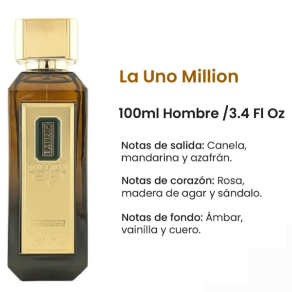 La Uno Million Royal es una fragancia masculina que replica fielmente el espíritu de One Million Royal de Paco Rabanne. Este perfume te envuelve en una experiencia olfativa audaz y sofisticada, combinando la fuerza amaderada con una calidez ambarada. Es ideal para quienes buscan una fragancia versátil y refinada para cada temporada y ocasión.